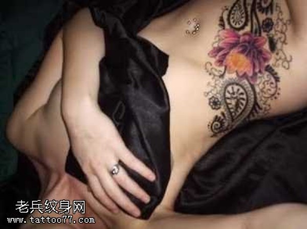 女性腰部莲花花纹刺青_腰部纹身图案大全_纹身图吧