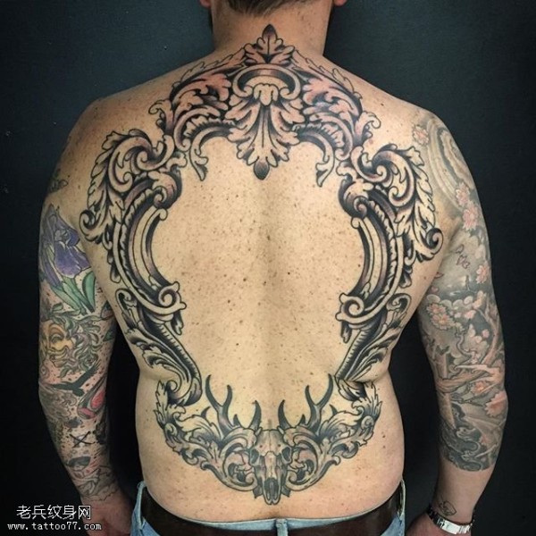 背部欧美花边纹身图案