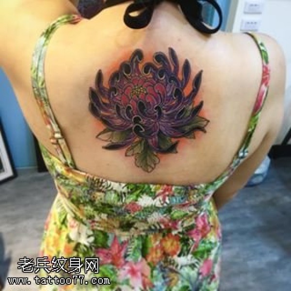 背部的黑菊花纹身图案