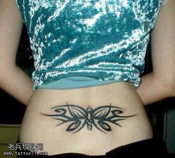 分享一款腰部时尚性感的蝶恋花纹身图案_腰部纹身图案大全_纹身图吧