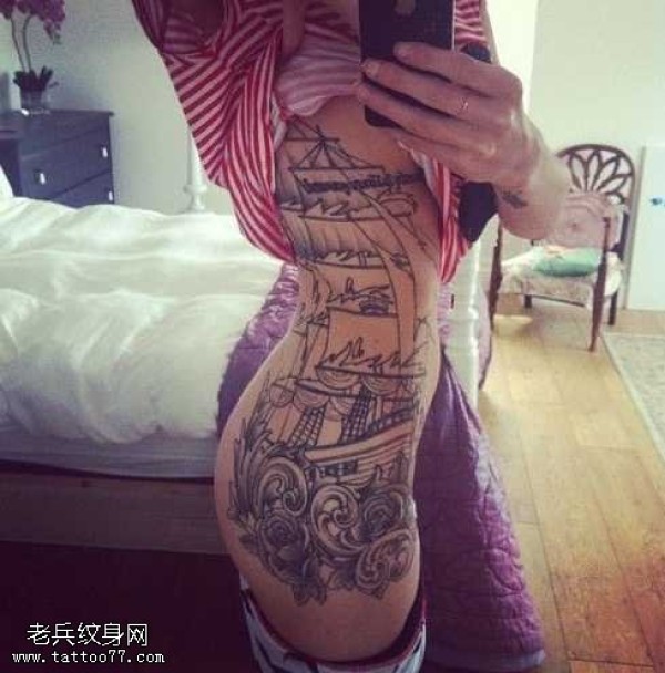 女性腰部莲花花纹刺青_腰部纹身图案大全_纹身图吧