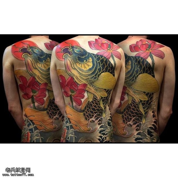 背部的大锦鲤纹身图案