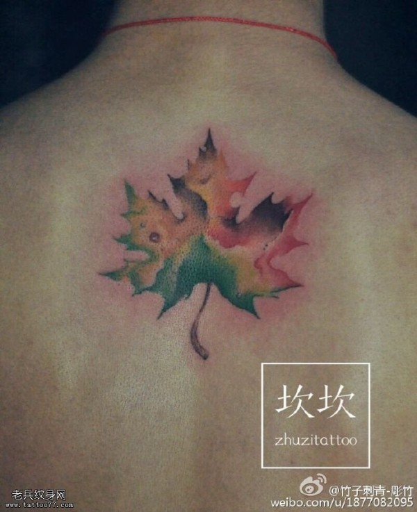 背部彩绘枫叶纹身图案