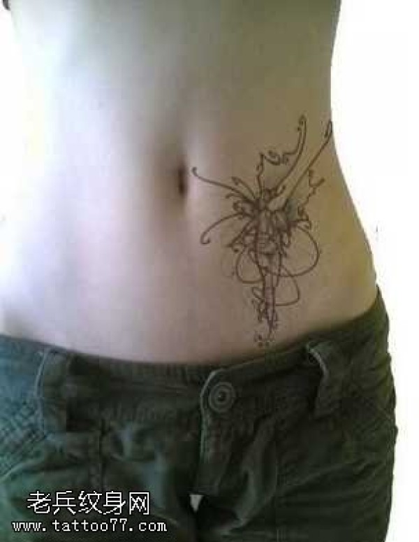分享一款腰部时尚性感的蝶恋花纹身图案_腰部纹身图案大全_纹身图吧