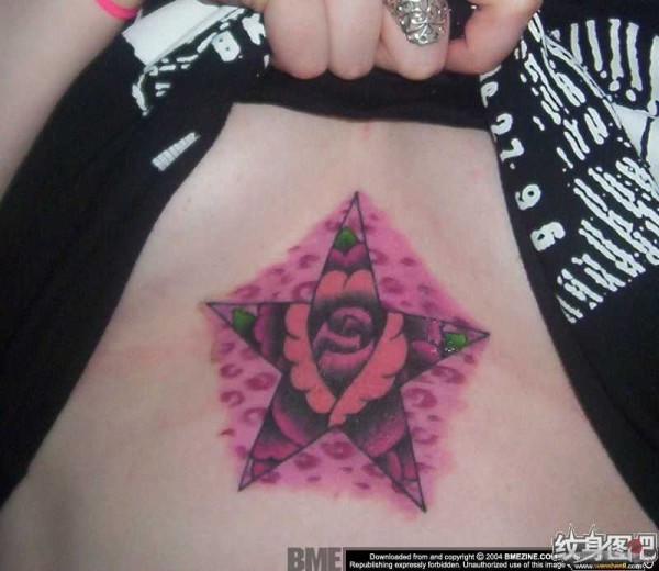玫瑰色的五芒星纹身