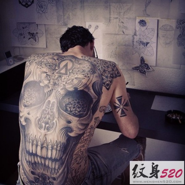 满背欧美骷髅纹身图案