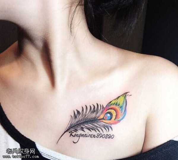 锁骨一根小小的羽毛纹身图案