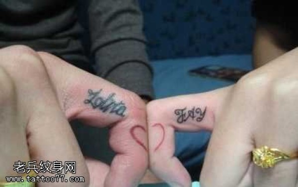 手指情侣英文心形纹身图案