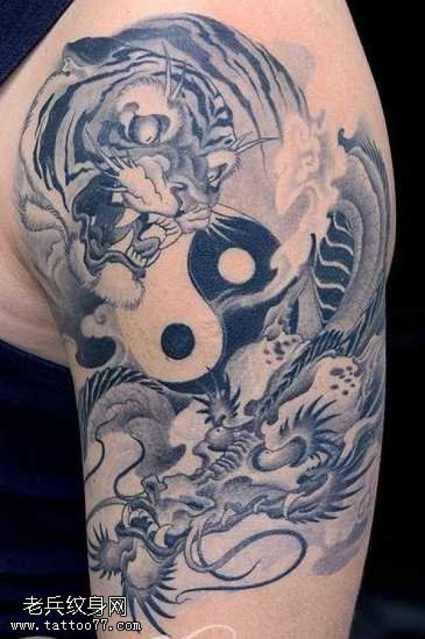 龙纹身手稿_一组老传统黑灰龙手稿纹身图案