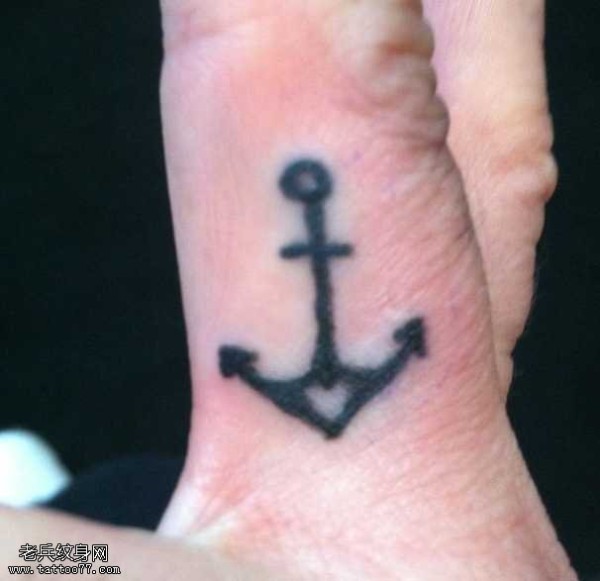 手指上简单的船锚纹身图案