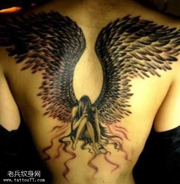 满背天使纹身图案