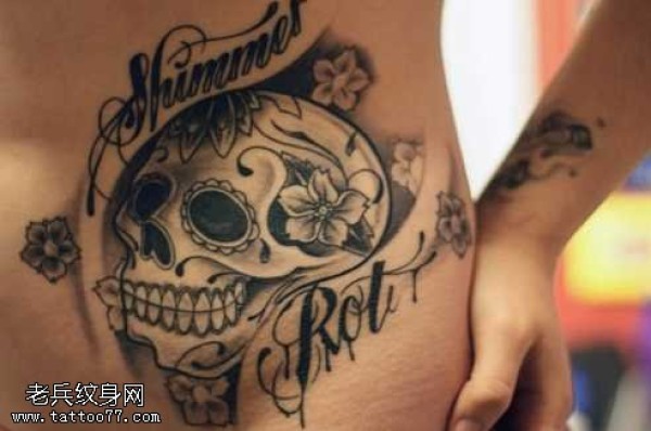 侧腰女骷髅刺青图案图片_骷髅纹身图案大全_纹身图吧