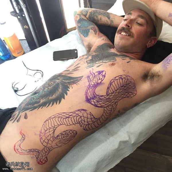 欧美风腹部线条蛇纹身图案
