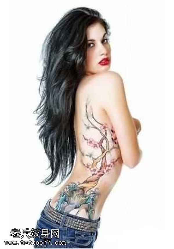 分享一款腰部时尚性感的蝶恋花纹身图案_腰部纹身图案大全_纹身图吧
