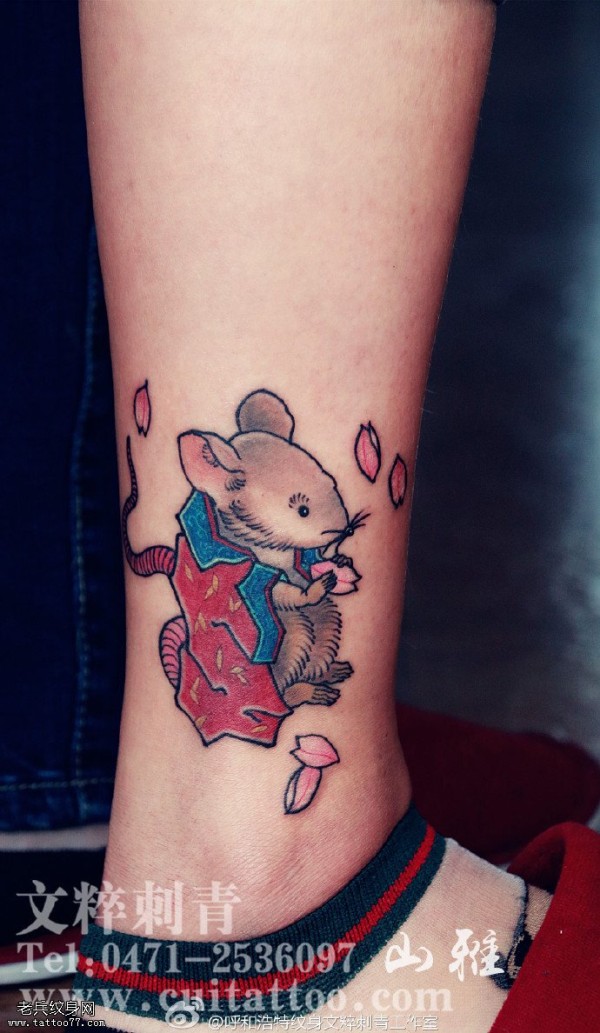 脚腕上的耗子纹身图案