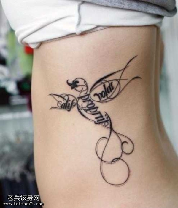 腰部时尚漂亮的飞鸟图腾纹身图案