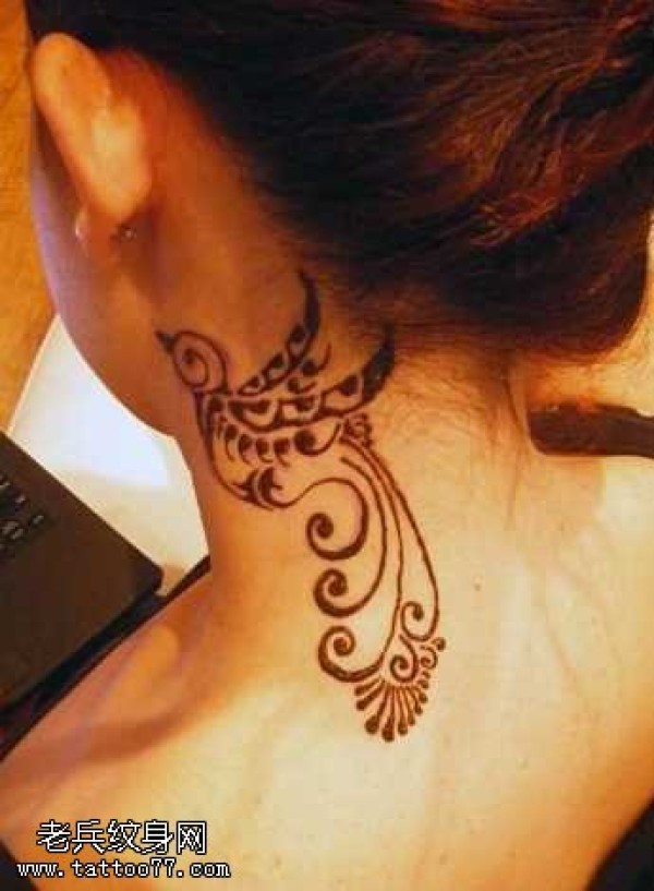 后颈部纹身小图--9张女生脖子后颈处的简约纹身图案