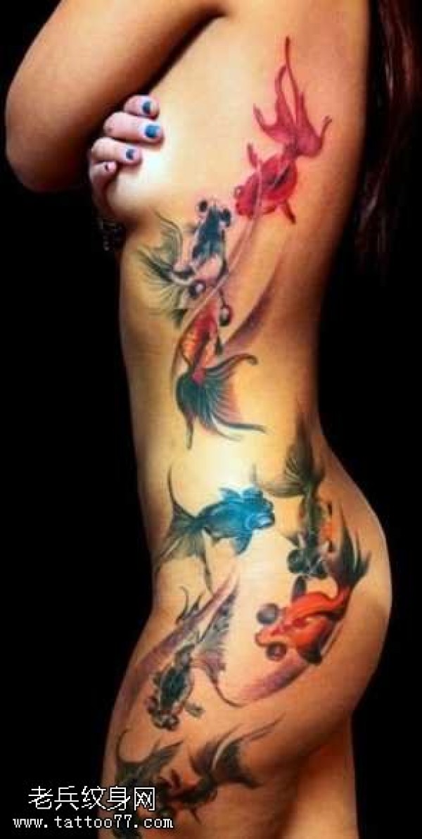 分享一款腰部时尚性感的蝶恋花纹身图案_腰部纹身图案大全_纹身图吧
