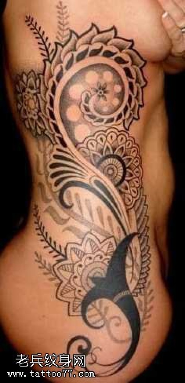 女性腰部莲花花纹刺青_腰部纹身图案大全_纹身图吧