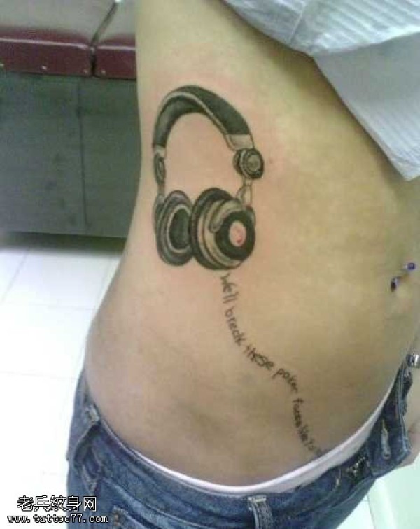 腰部耳机英文纹身图案