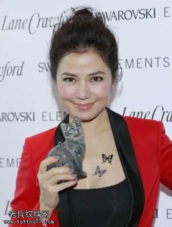 胸部钟楚红大方秀蝴蝶纹身图案