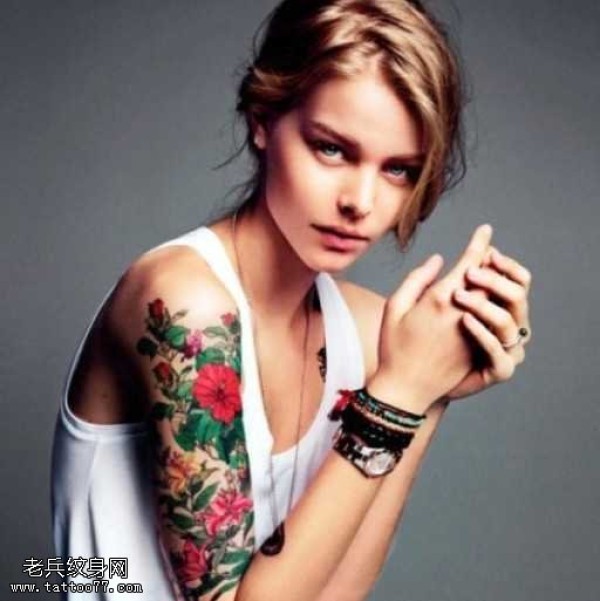 手臂彩色花纹身图案