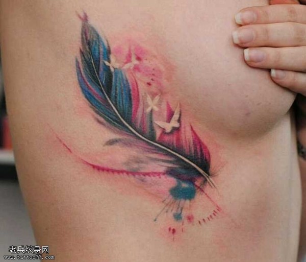 胸部好看的羽毛纹身图案