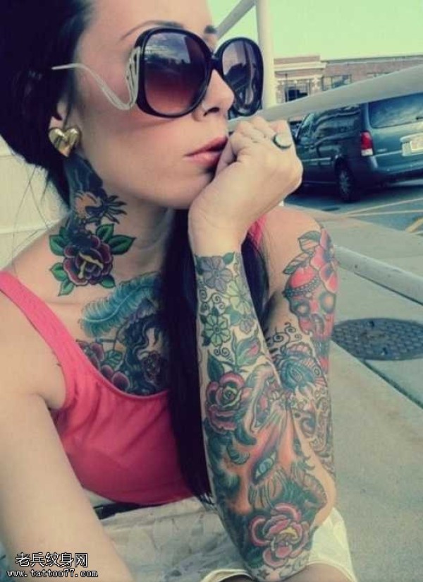 花臂个性美眉的纹身图案