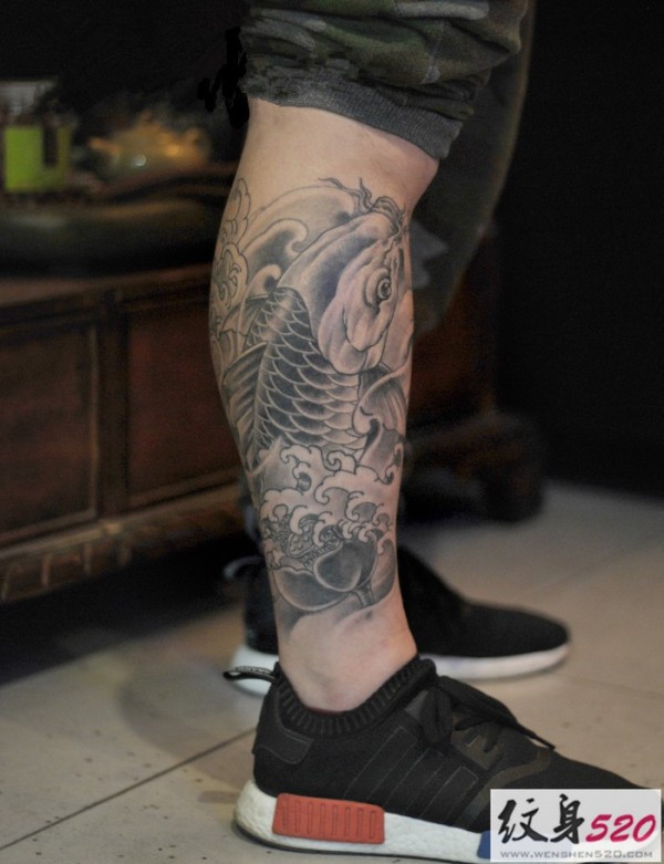 传统鲤鱼花小腿纹身_腿部纹身图案大全_纹身图吧
