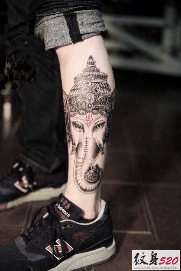 腿部经典传统象神纹身