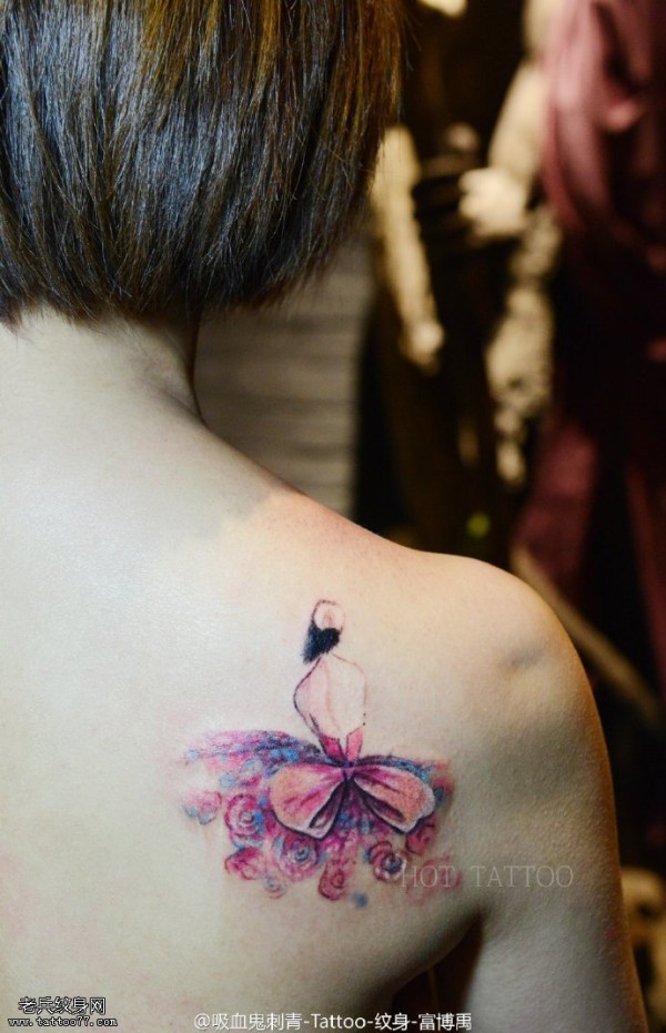 女生肩花纹身_15张女性双肩对称的肩花纹身图案作品图片