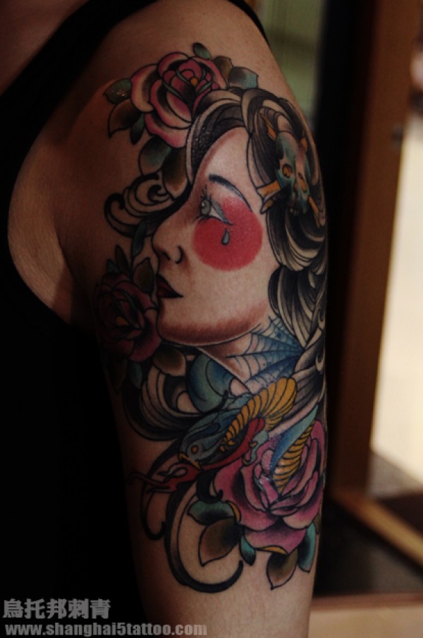 school花臂纹身--一组漂亮的school风格的花臂纹身图案作品