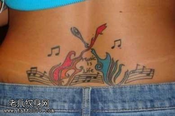 分享一款腰部时尚性感的蝶恋花纹身图案_腰部纹身图案大全_纹身图吧