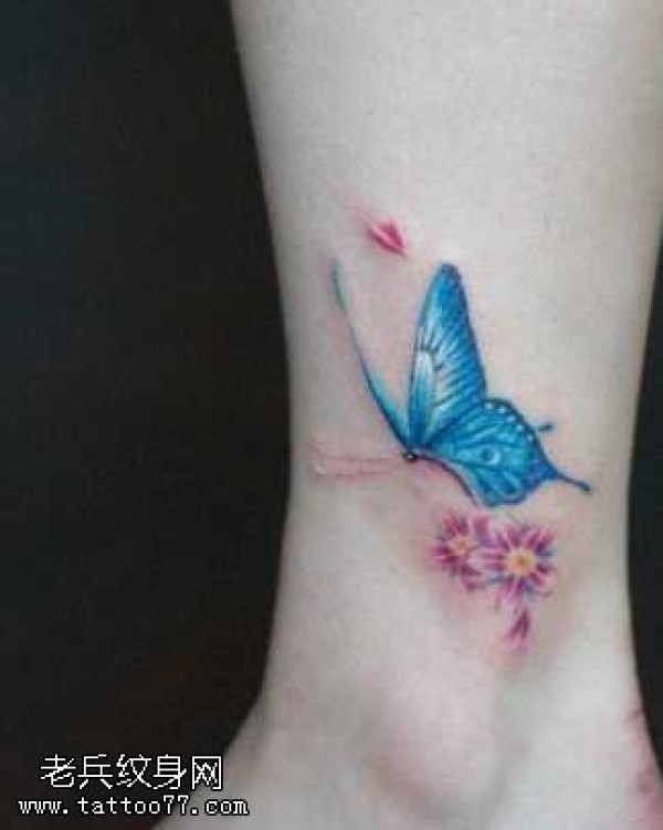 腿部小巧的蝴蝶纹身图案