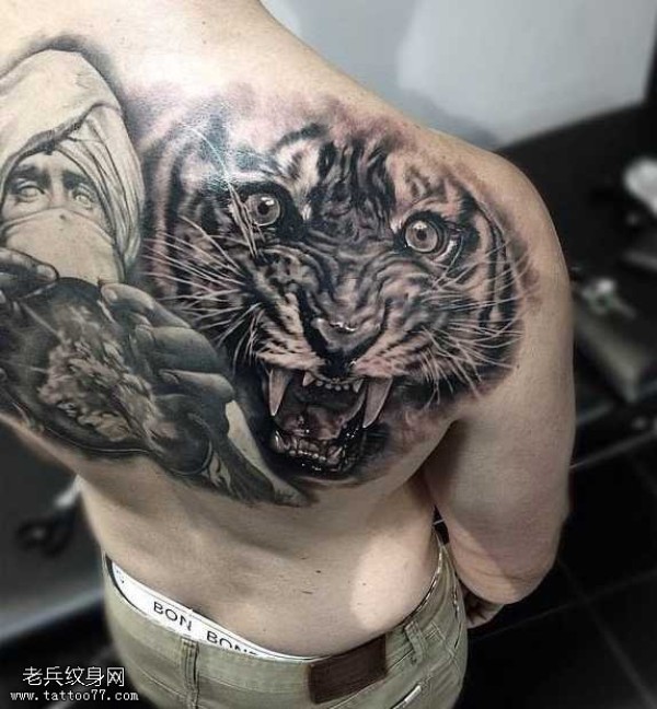 霸气半胛老虎纹身_动物纹身图案大全_纹身图吧