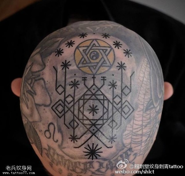 霸气男头部时尚纹身图片_头部纹身图案大全_纹身图吧