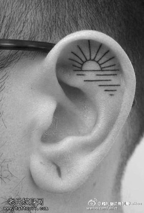 多款女生耳后黑色线条素描文艺小清新小图案纹身图案