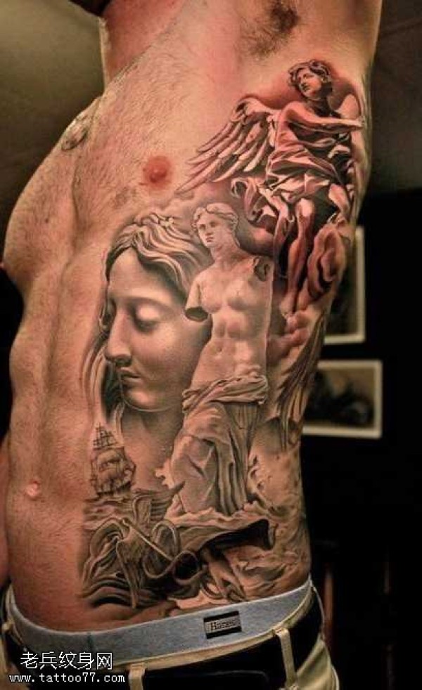 侧腰霸气老虎头纹身_腰部纹身图案大全_纹身图吧