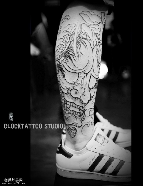 小腿点刺大般若纹身图案