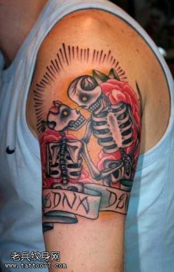 手臂骷髅恋人纹身图案