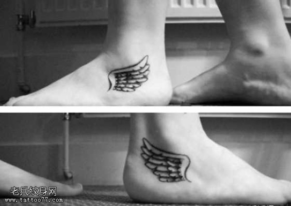 脚部翅膀羽翼情侣纹身图案