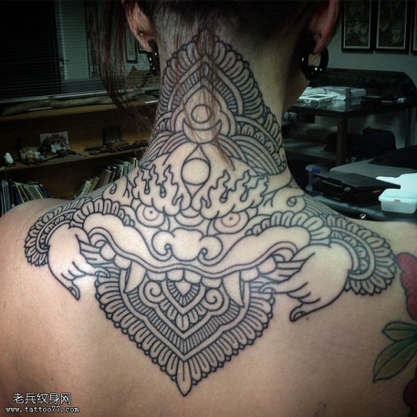 女生肩花纹身_15张女性双肩对称的肩花纹身图案作品图片
