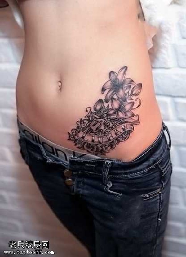 女性腰部莲花花纹刺青_腰部纹身图案大全_纹身图吧