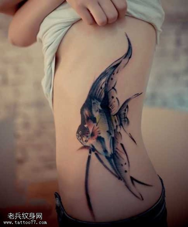 分享一款腰部时尚性感的蝶恋花纹身图案_腰部纹身图案大全_纹身图吧
