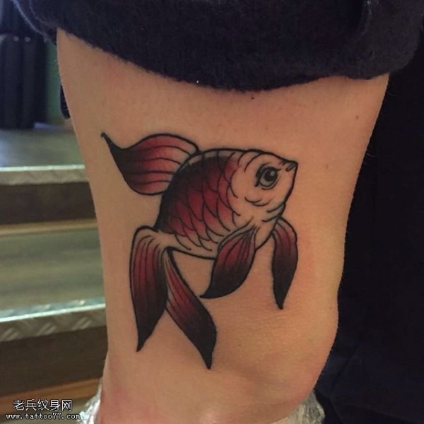 腿部逼真写实的一条小鱼纹身图案