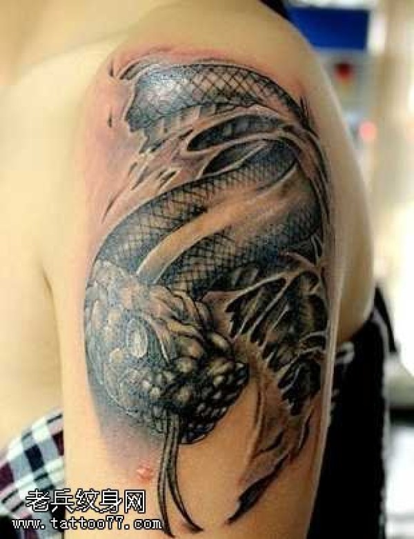 龙纹身手稿_一组老传统黑灰龙手稿纹身图案