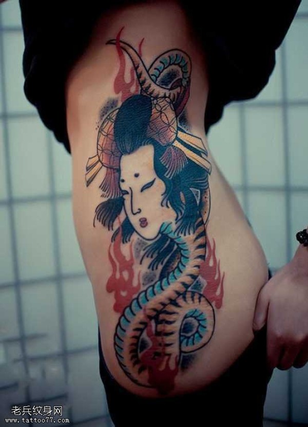 侧腰霸气老虎头纹身_腰部纹身图案大全_纹身图吧