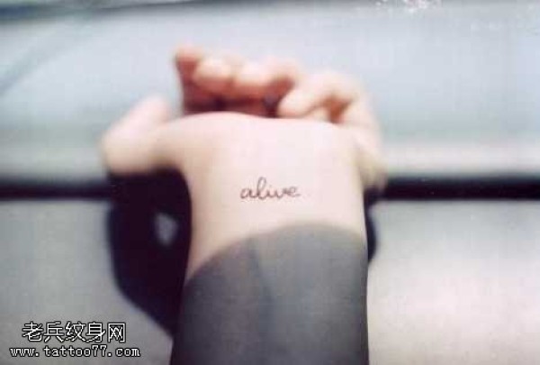 手部英文字符纹身图案
