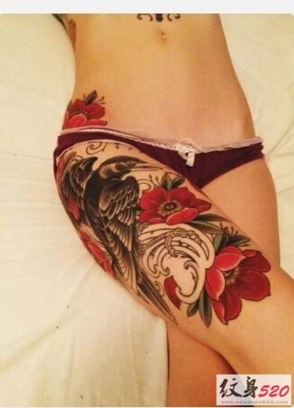 传统花腿纹身--18张传统风格的大花腿纹身图案作品