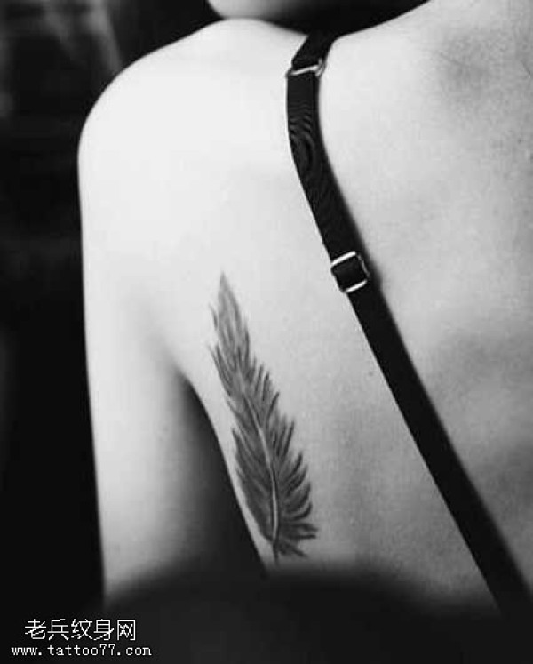 背部一根好看的羽毛纹身图案
